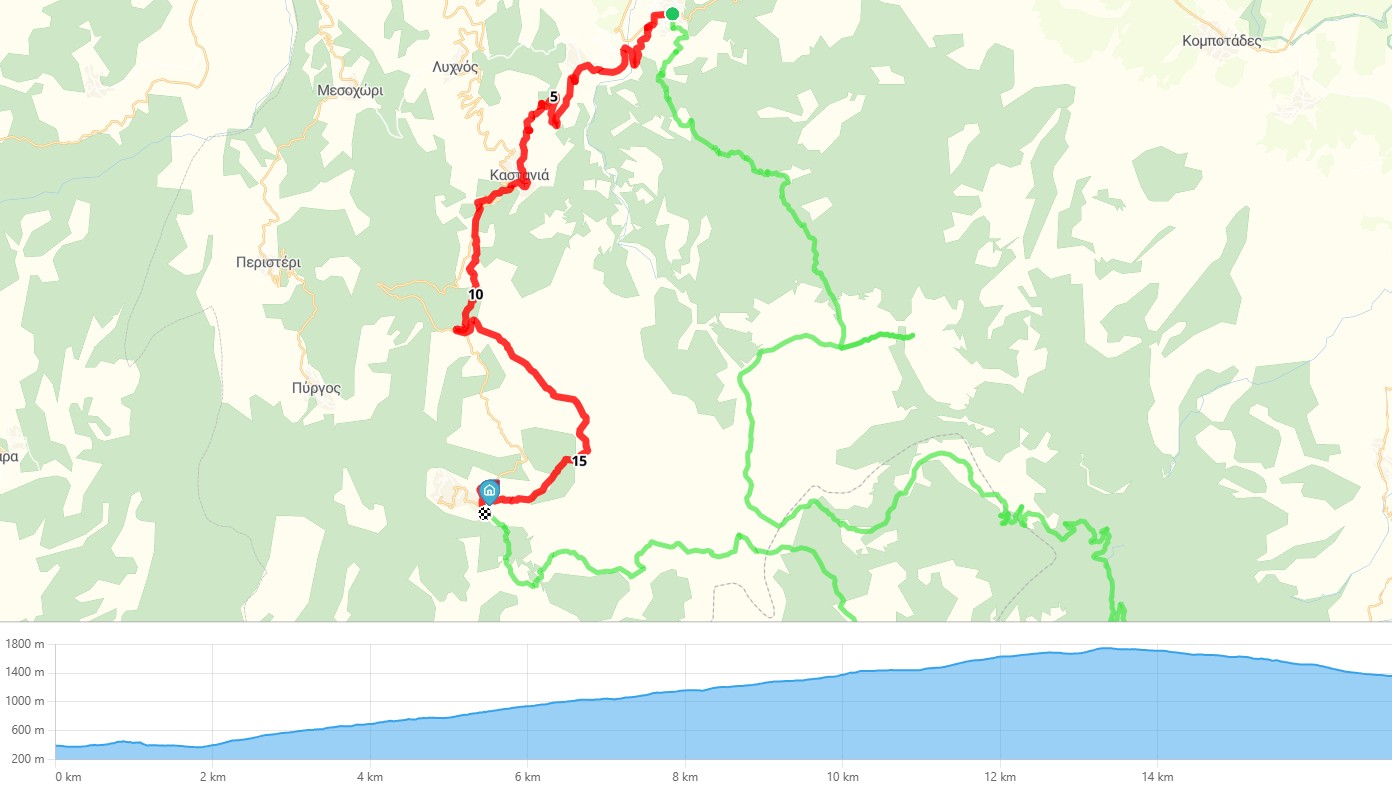 Ο αγώνας αρχίζει να ανηφορίζει μπαίνοντας σε όμορφο δάσος για 6χλμ περίπου. Λίγο πριν το εκκλησάκι της Παναγίας, αρχίζει κατηφορικός χωματόδρομος ο οποίος σε οδηγεί στον 5ο σταθμό του αγώνα.